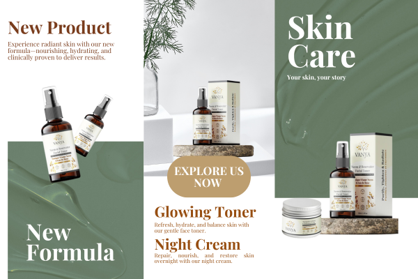 At Vanya, our vision is to empower every individual to embrace their natural beauty through gentle, effective skincare. We believe that caring for your skin is more than a routine—it’s a ritual of self-love and confidence. Our thoughtfully crafted products combine the purity of nature with modern science to nurture your skin’s health and glow.